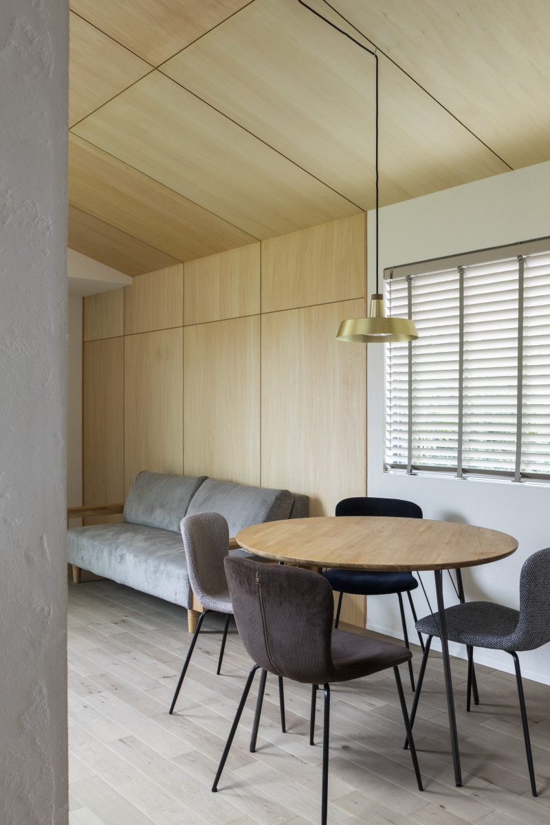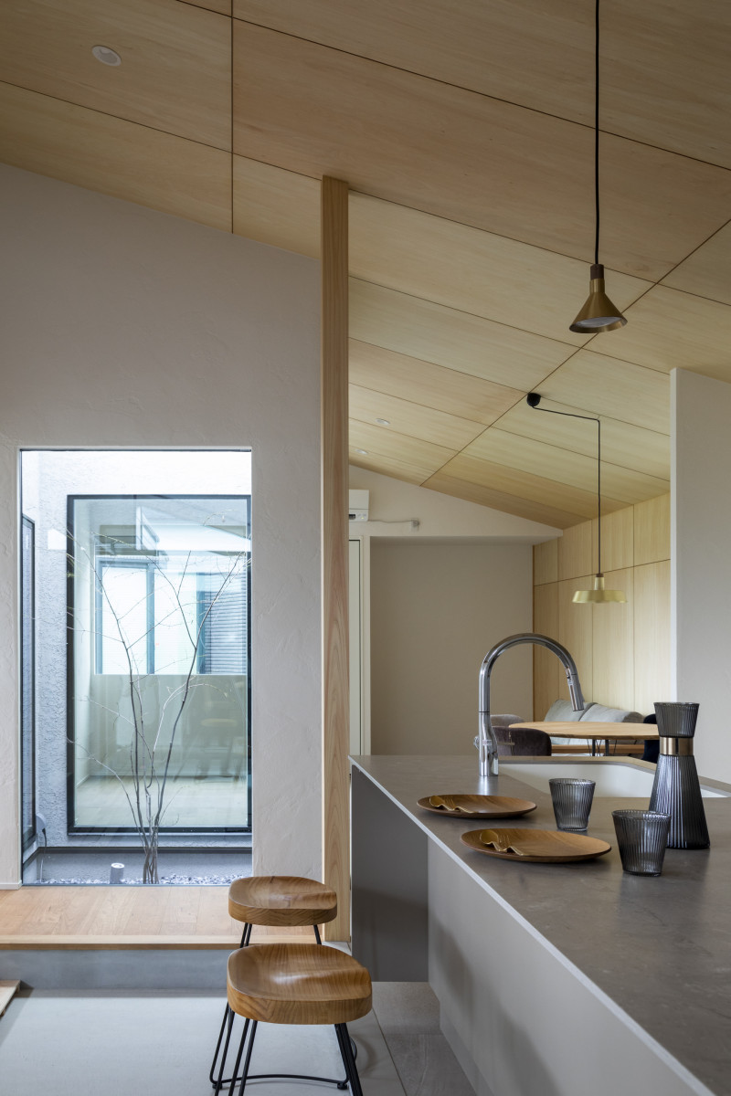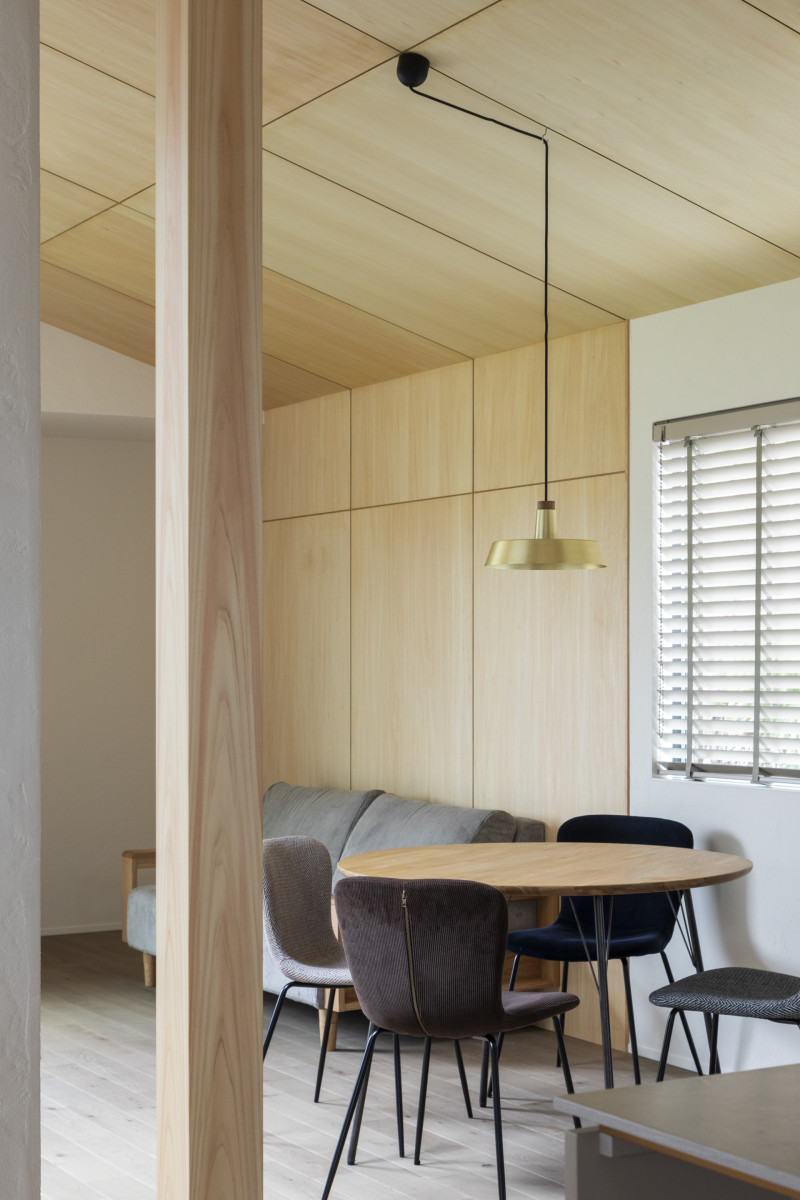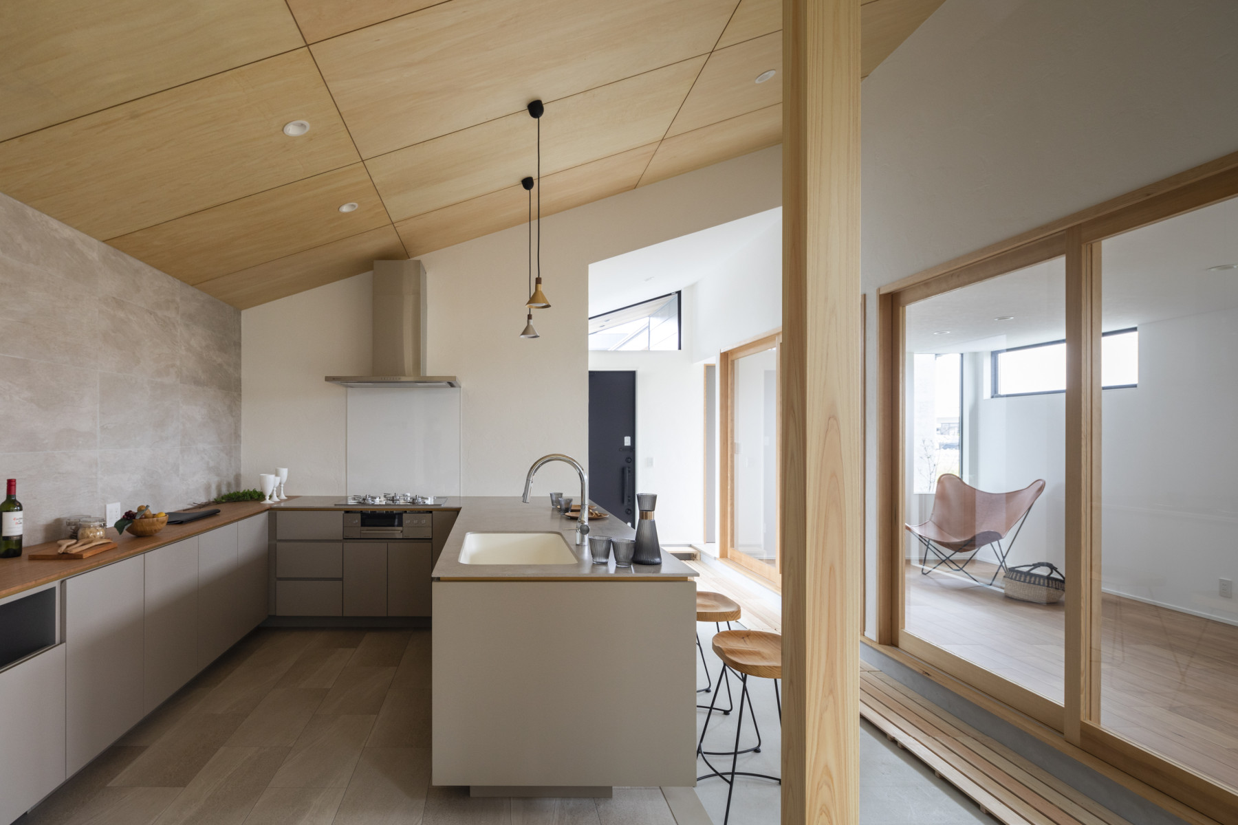 玄関を開けると「ドマ」空間が広がる住宅。この住宅における「ドマ」=「生活の余白」。分譲型モデルハウスとして建てられたこの住宅は、住み手によって、また生活者の成長によって変化拡張していく住宅を目指した。ドマは、そのままキッチンやガラス張りの個室と連続し、その様相が変化する。部屋に名前をつけることで、そこでの行為が制約されている現代の住宅にはない、余白のある自由度の高い空間になっている。