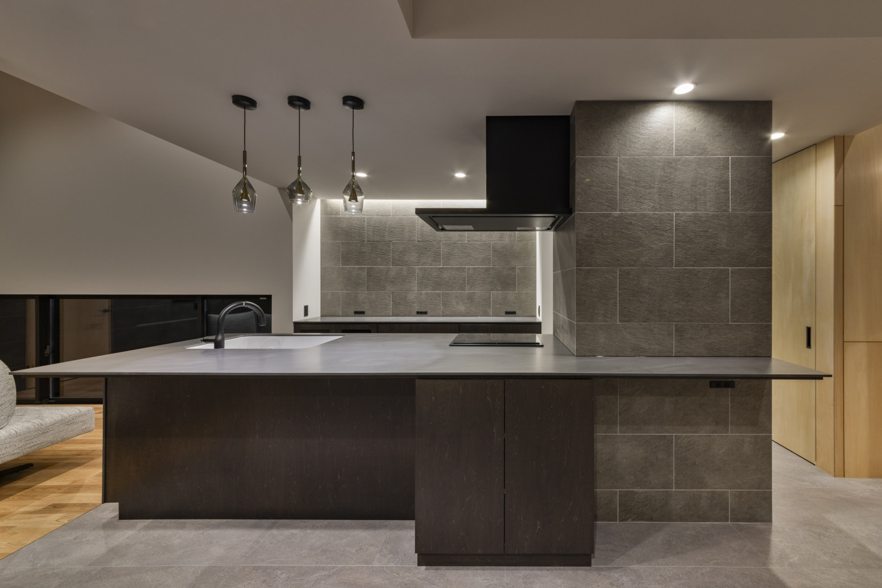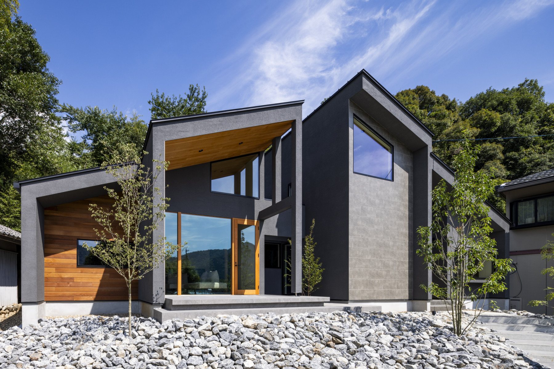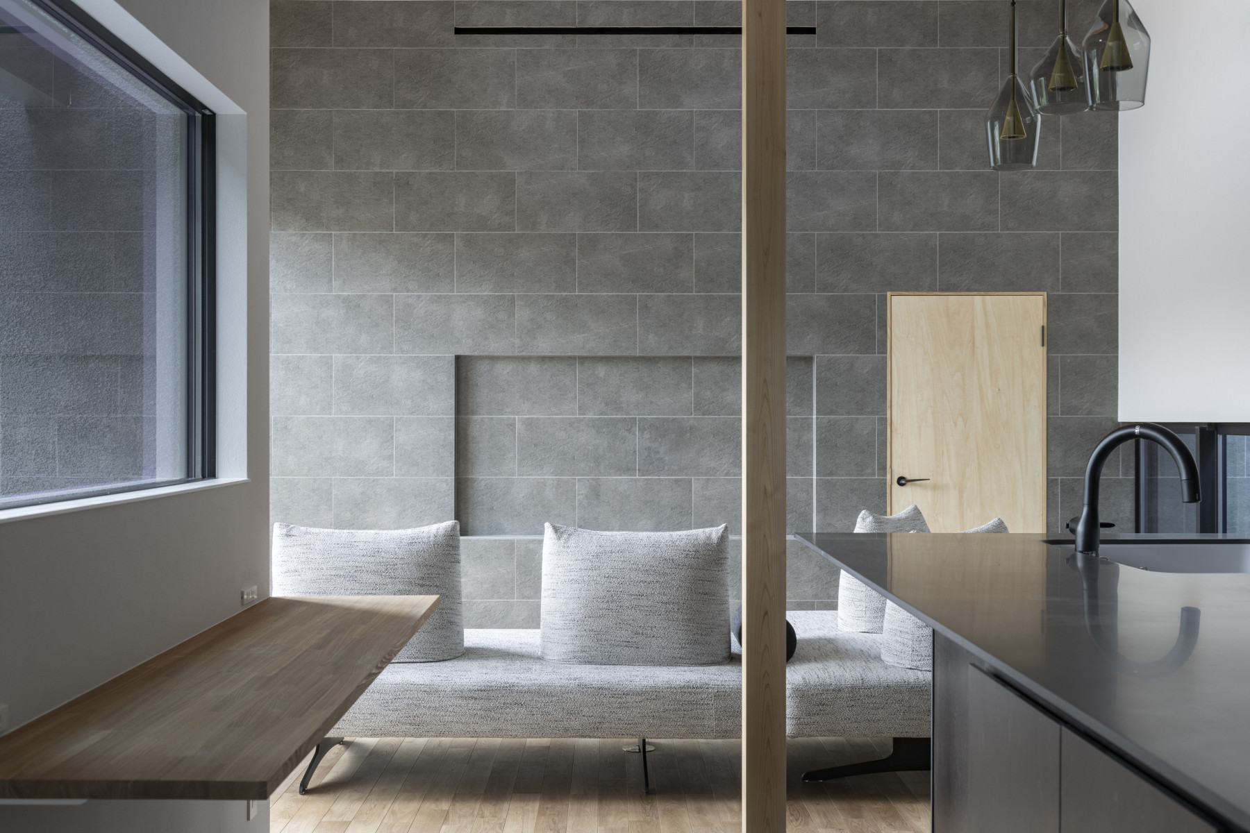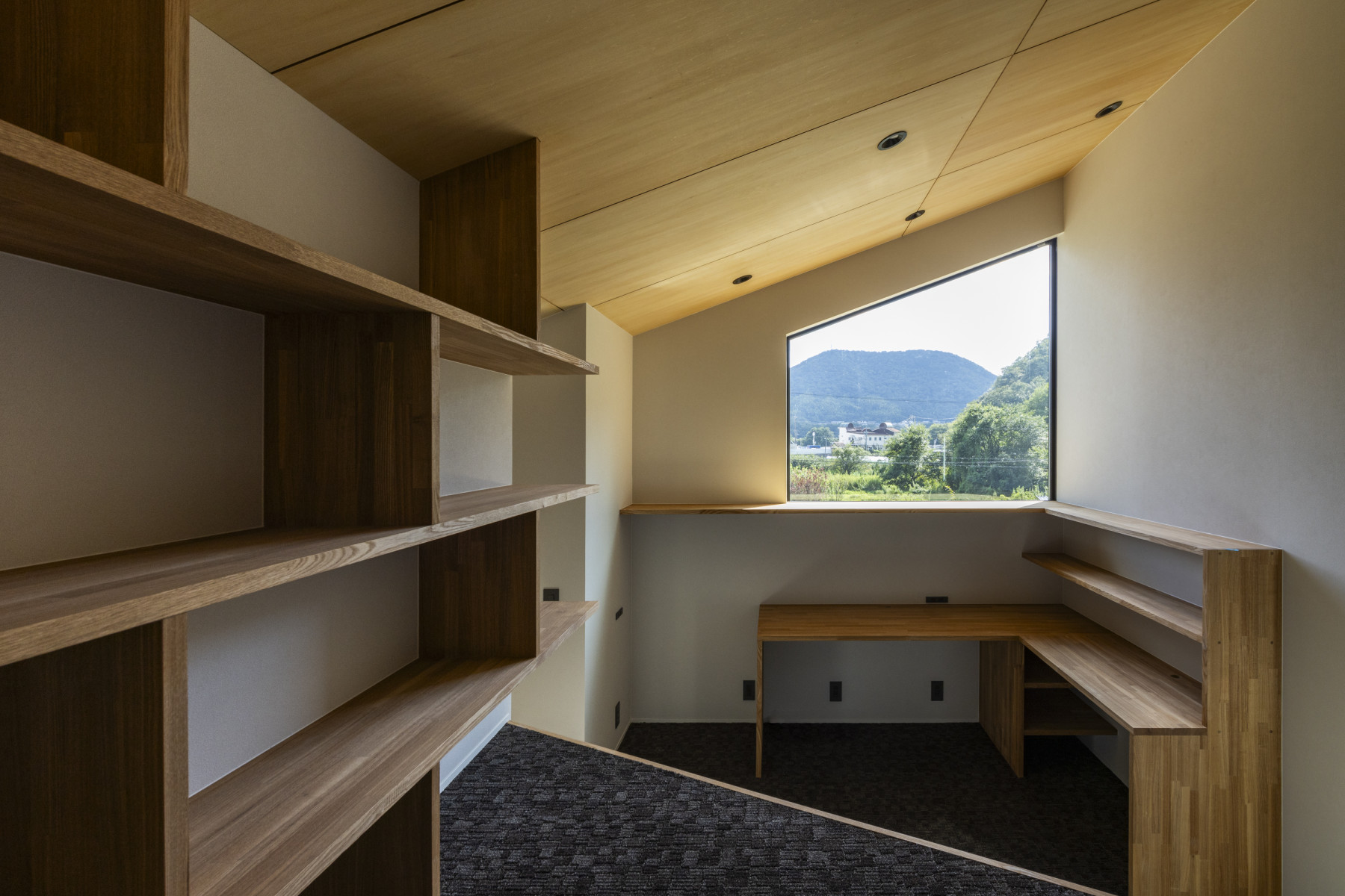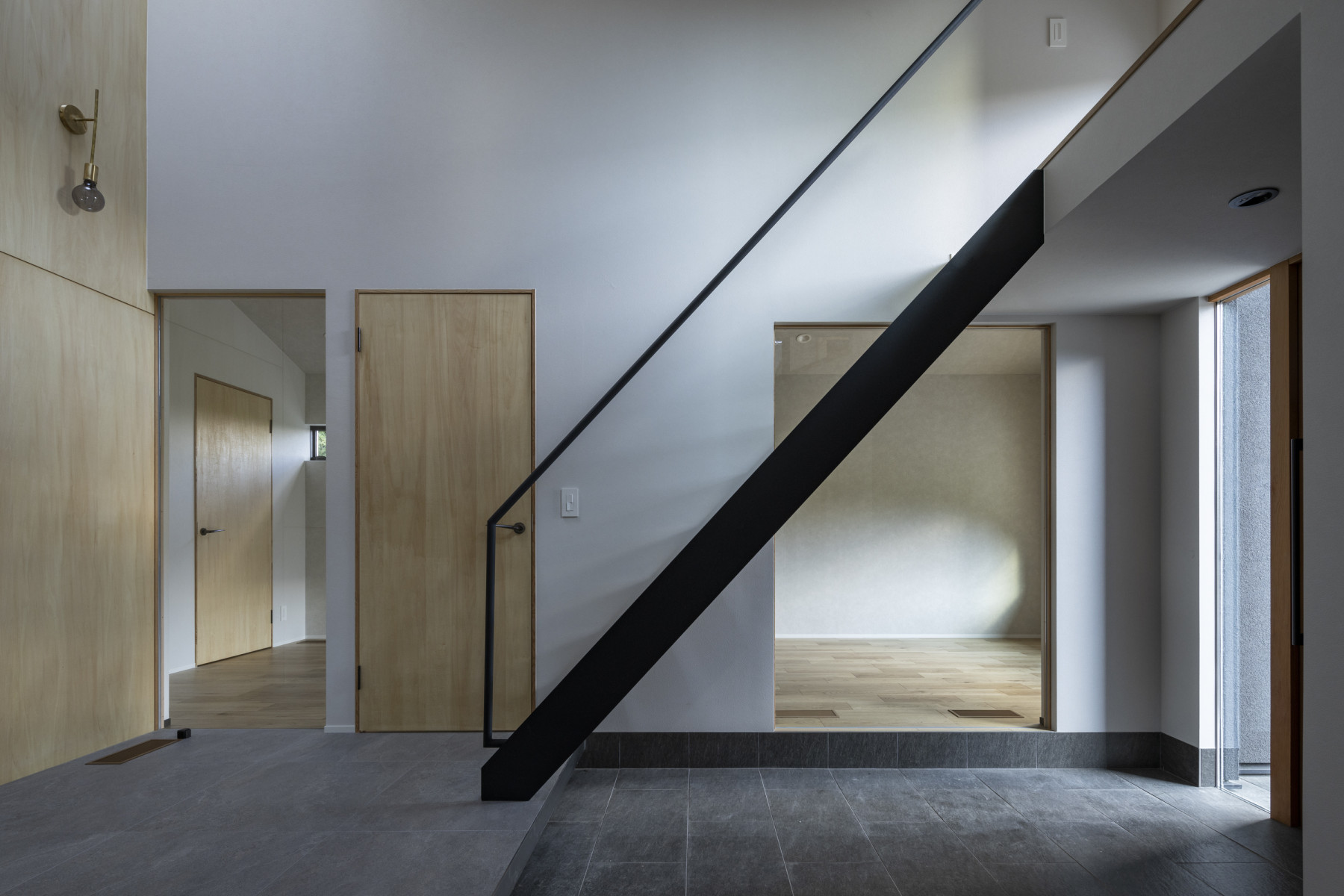 雄大な自然の中に溶け込むように佇む建築家の自邸。弊社のモデルハウス兼オフィスとしても位置付け、多様な体験が可能です。内部機能を基に断面的に構成された必要ボリュームが外観を形作り、深い庇を兼ねた各フレーム毎に素材を使い分けることでその陰影によりファサードを形成しています。弊社のモデルハウスとなるここでは、光、温度環境、音、設備、全ての実体験が可能になります。日本中に蔓延る「多大な性能」と「一律な機能」だけに特化した住宅ではなく、一見無駄にみえる余白や開口をもつ、多様なアクティビティを許容する空間づくりをしています。実験的な全館空調、ガラス張りの子ども部屋、緩急のある天井高さ・・・まずは実際に御体験ください。