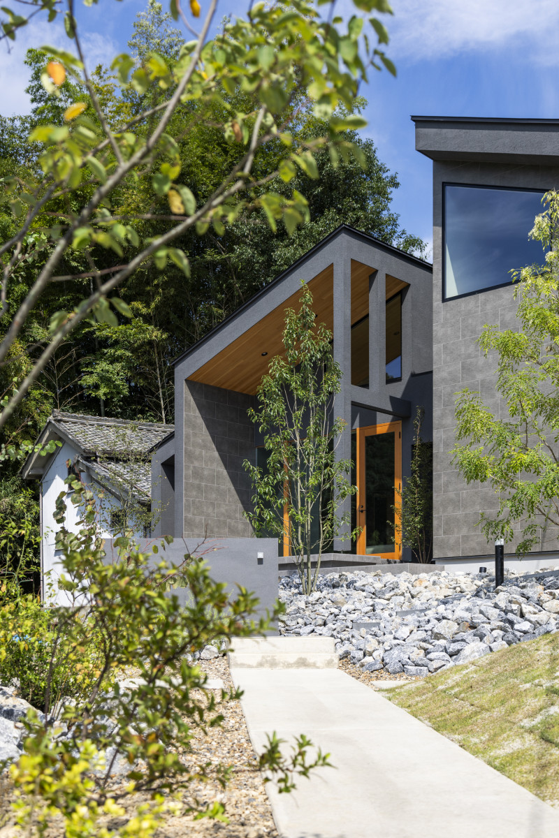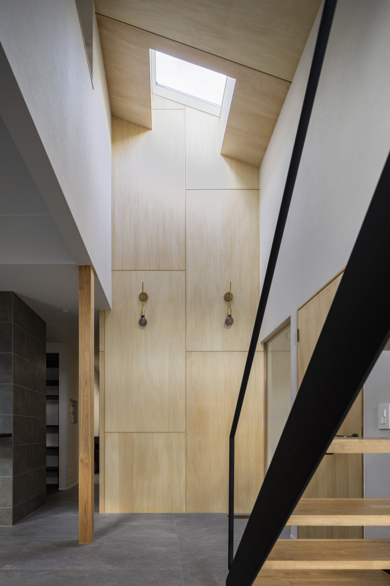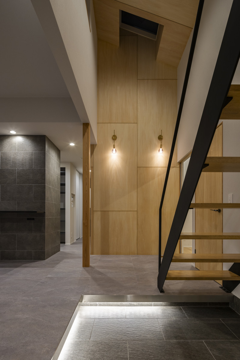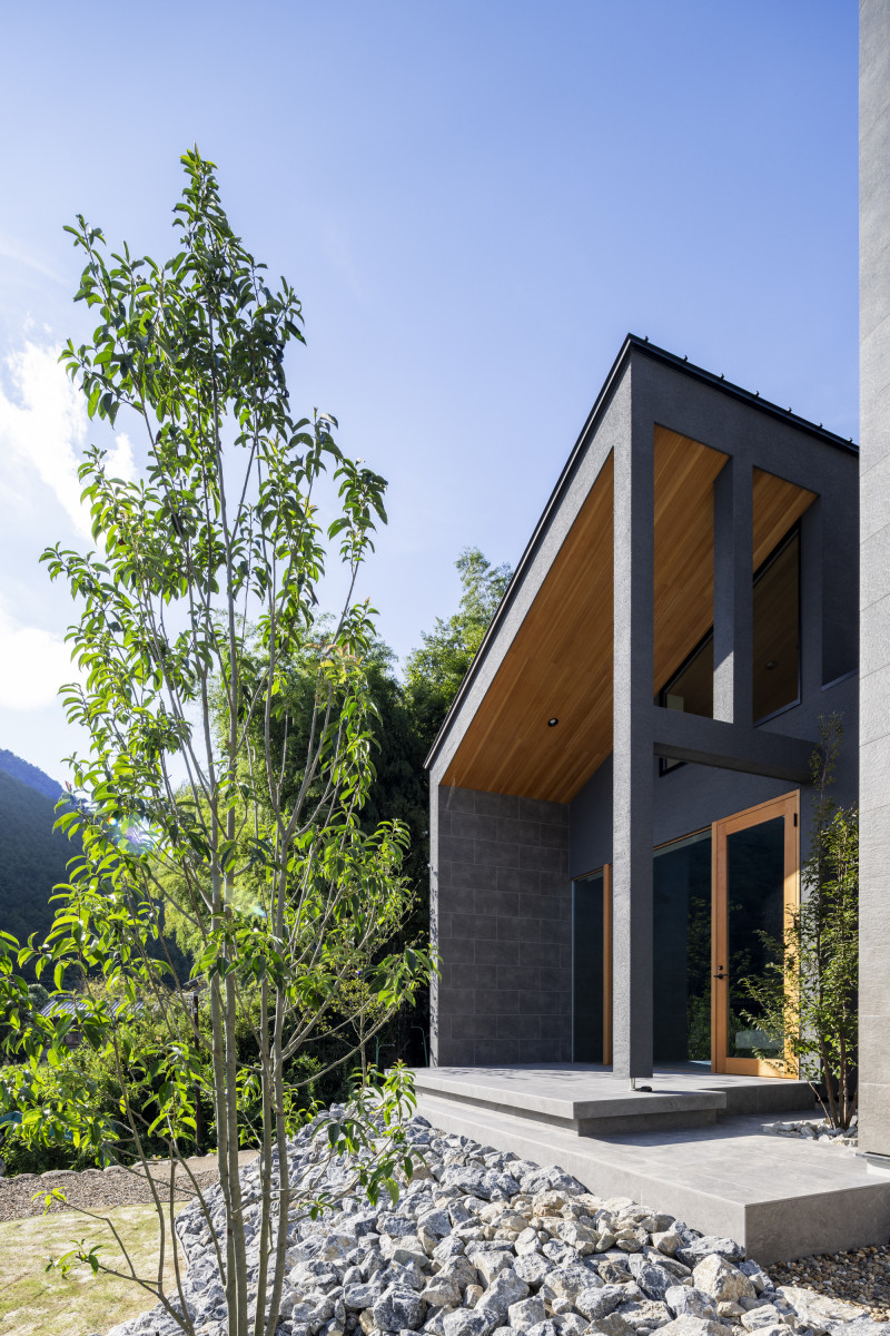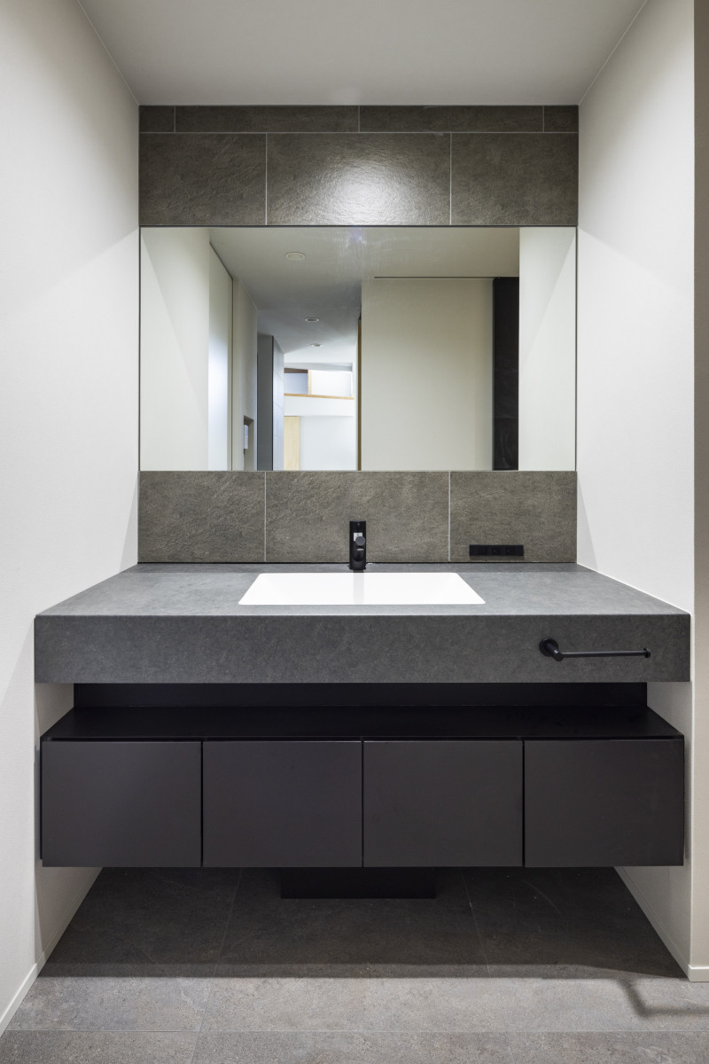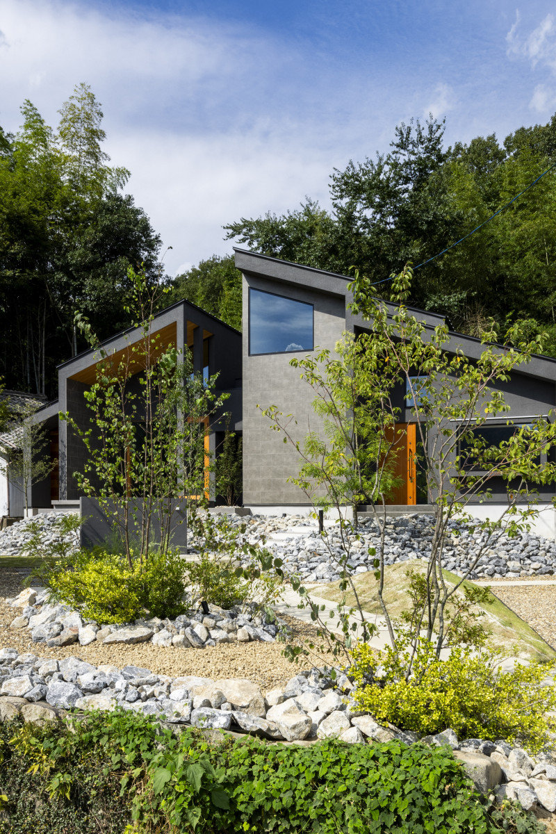 雄大な自然の中に溶け込むように佇む建築家の自邸。弊社のモデルハウス兼オフィスとしても位置付け、多様な体験が可能です。内部機能を基に断面的に構成された必要ボリュームが外観を形作り、深い庇を兼ねた各フレーム毎に素材を使い分けることでその陰影によりファサードを形成しています。弊社のモデルハウスとなるここでは、光、温度環境、音、設備、全ての実体験が可能になります。日本中に蔓延る「多大な性能」と「一律な機能」だけに特化した住宅ではなく、一見無駄にみえる余白や開口をもつ、多様なアクティビティを許容する空間づくりをしています。実験的な全館空調、ガラス張りの子ども部屋、緩急のある天井高さ・・・まずは実際に御体験ください。
