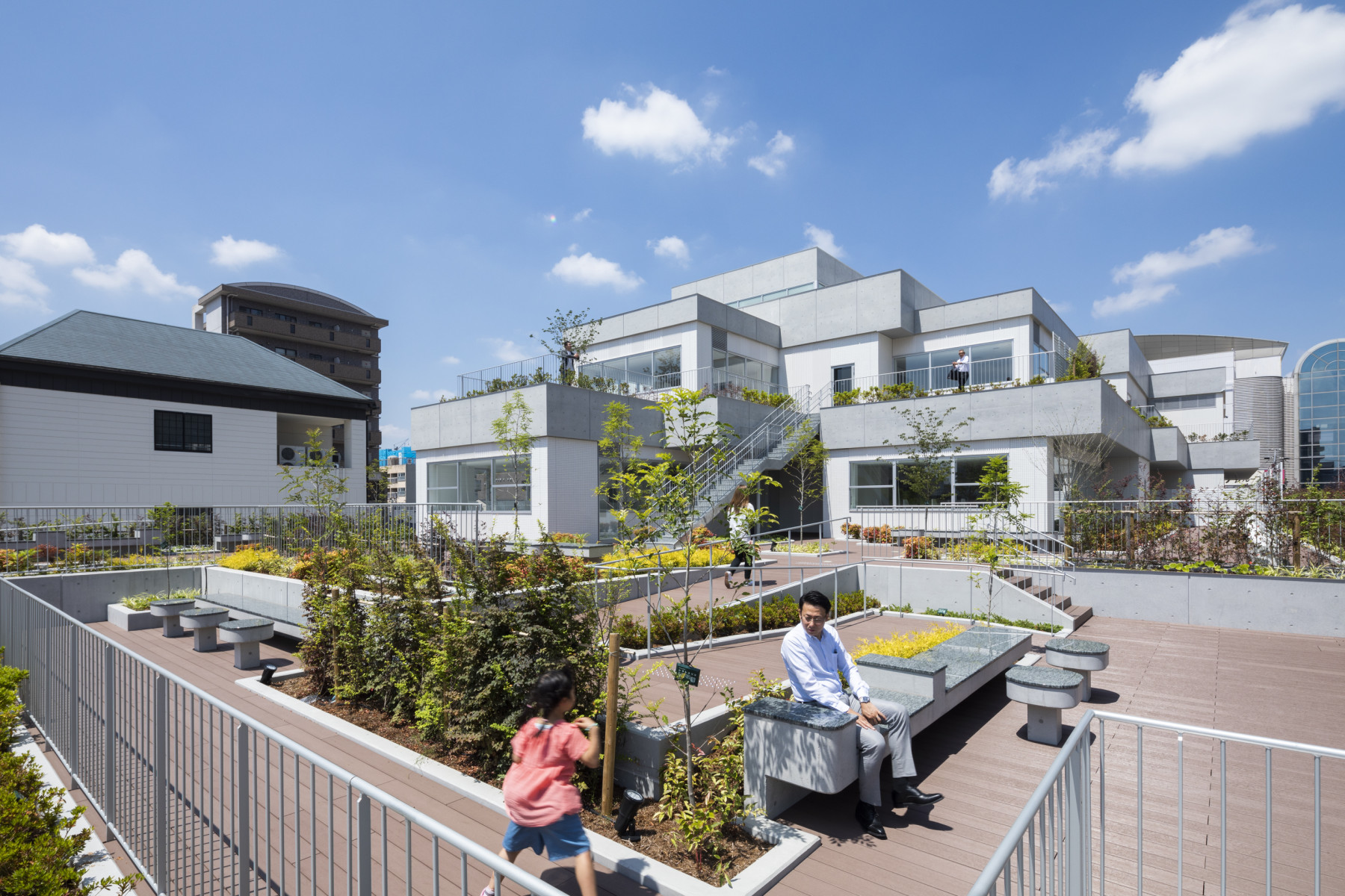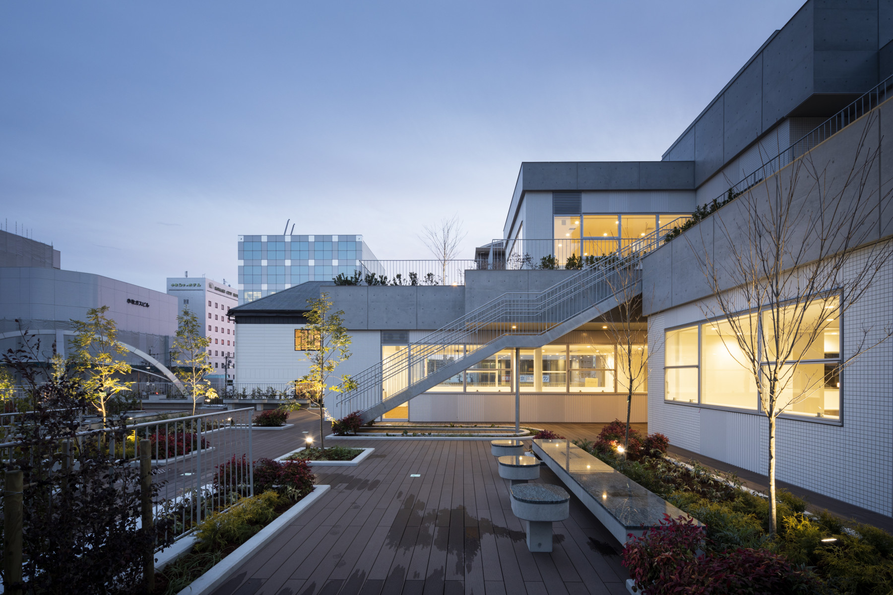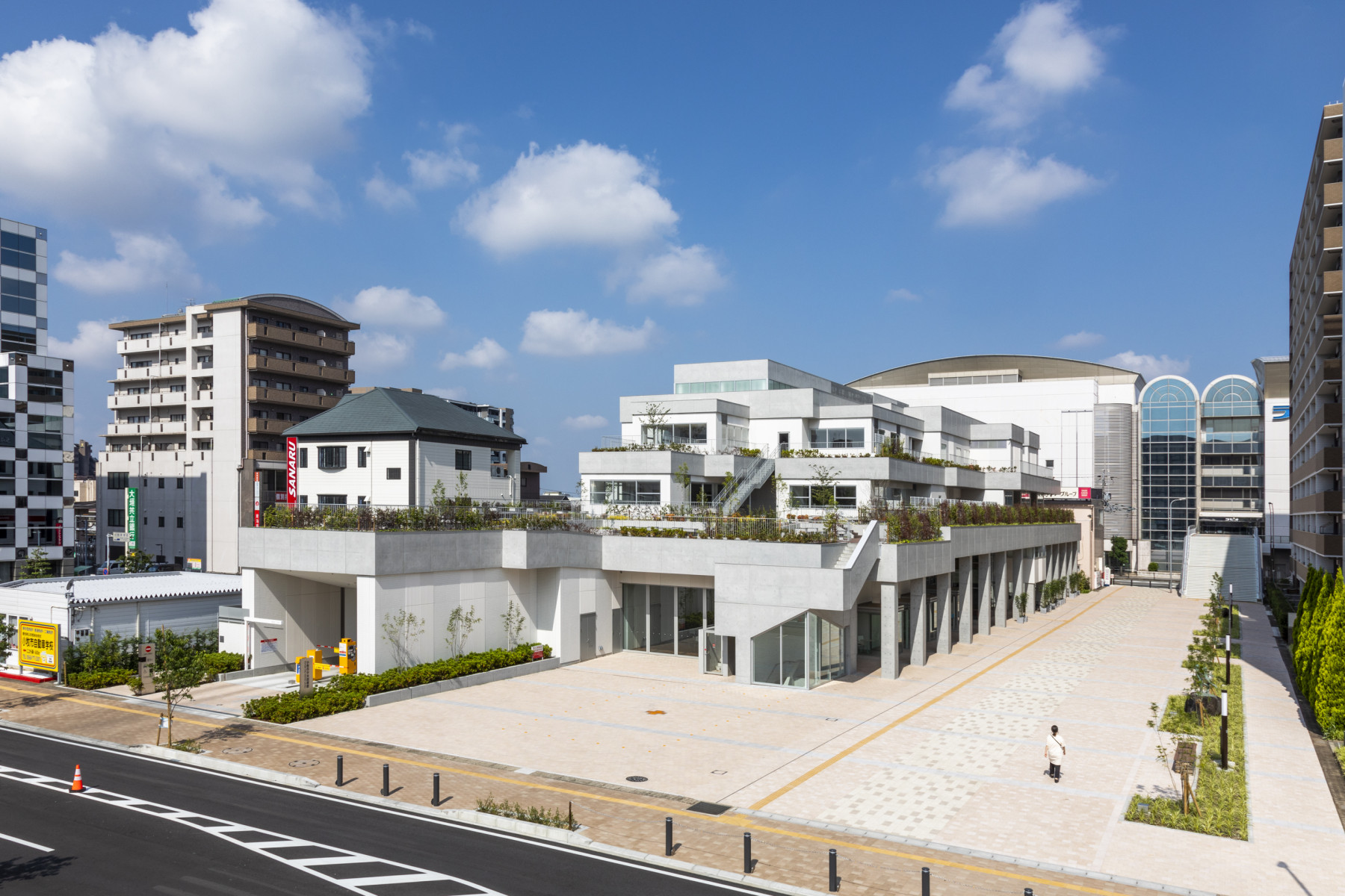 我々は地域の象徴でもある「小牧山」を手掛かりに、駅前に「小さな小牧山」を創ることで、緑溢れる景観を創出し、市民が自由に過ごせる居場所をつくることを目指した。小牧山のように段々状にセットバックされた建物には、テラスや緑化、多様な居場所が点在している。そして「商業開発依存型の街づくり」から「市民が生きがいを感じられる街づくり」への転換を目指した。